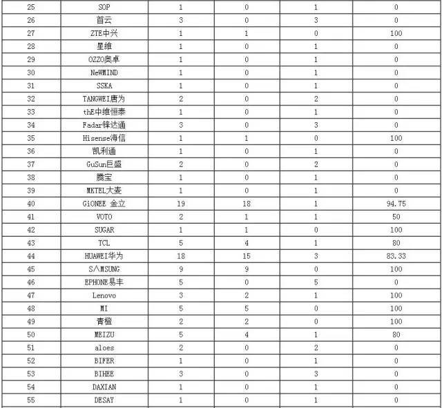不合格的项目主要有发送接收灵敏度、发送接收响度、发送接收失真、电池放电等。此次抽检的商品共涉及66个品牌。总体来讲,知名品牌数字移动电话机的合格率高于非知名品牌。抽检不合格的知名品牌有华为、魅族、金立、天语、海尔等。
