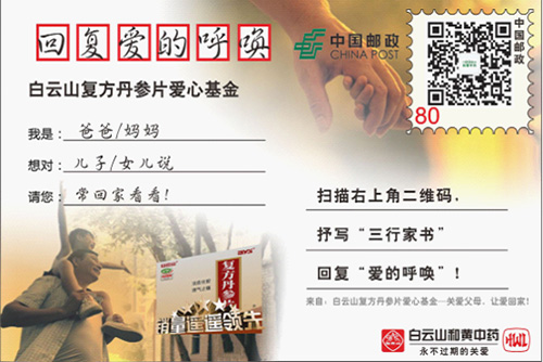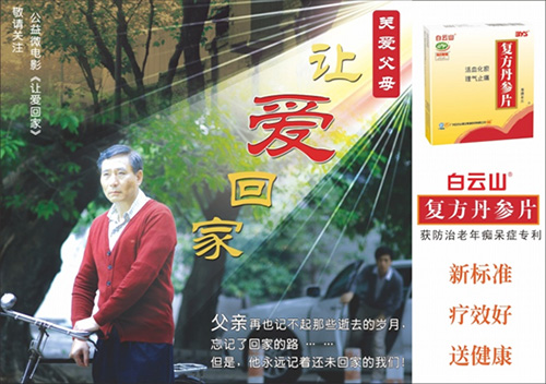 据记者了解,此次白云山和黄中药就在播放该剧的爱奇艺、PPS等视频网站上同步推出了主题为“关爱父母,让爱回家” 的公益广告。而白云山和黄已经不是第一次进行此类的线上营销活动。早在去年,白云山和黄中药就利用新媒体全线启动以《让爱回家》为主题的事件营销活动,并在随后到来的国际老年痴呆症日、中秋节、国庆节、重阳节等与关爱父母、关爱家人相关的节假日利用新媒体发起一系列同主题活动。旨在倡导儿女多一点关爱自己的父母。上线仅七天点击量就超过100万次,营销成效可见一斑。