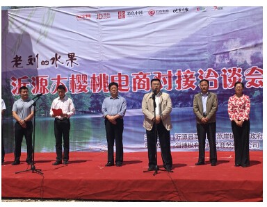 本次洽谈会在精彩的文艺演出中开场,开幕仪式上,淄博极有鲜电子商务有限公司总经理刘永平和北京吃客之家电子商务有限公司总经理元帅先后发表了讲话,沂源县政府副县长王超同志作了致辞。随着淄博市商务局电子商务科科长梁天岭、沂源县政府副县长王超、沂源县燕崖镇党委书记黄军红等共同按动启动球,标志着“老刘的水果”沂源大樱桃电商对接洽谈会正式开始,开幕式结束后,领导、来宾们来到燕崖大樱桃采摘园进行了现场考察参观,并给予了燕崖大樱桃高度评价。