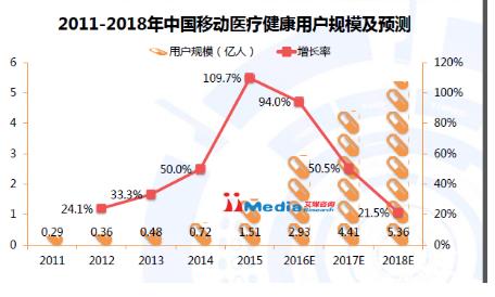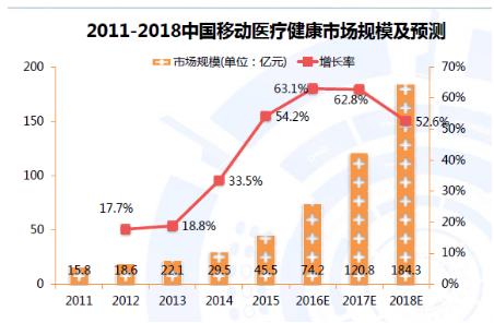 近日,全球领先的移动互联网第三方数据挖掘和分析机构艾媒咨询(iiMediaResearch)权威发布《2016第一季度中国移动医疗健康市场发展动态》。数据显示,截止2016年底中国移动医疗健康市场规模预计将会达到74.2亿元。2018年,中国移动医疗健康市场规模将达到184.3亿。