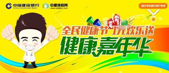 建行手机银行的用户有福啦!为了进一步创造客户价值,提供全面的健康服务,中国建设银行联合中康体检网特别推出“全民健康节,1元欢乐送”建行手机银行用户健康嘉年华活动。活动期间,建行用户通过手机银行,只需花费1元即可抢购原价188元颈椎正侧位拍片检查。