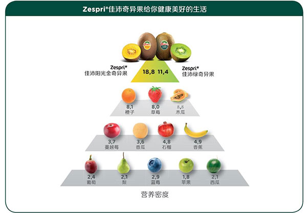 在2016年新版中国居民膳食指南中,水果首次进入了餐盘,标志着中国营养学会对于果蔬营养的重视。上海市营养学会副理事长蔡美琴教授建议,大众应养成天天吃蔬果的好习惯,并尽量选择营养元素丰富、营养密度高的水果,例如像Zespri®佳沛新西兰阳光金果在同等重量下营养密度是苹果的10倍,绿奇异果营养密度是苹果的6倍。通过摄入天然优质的水果能更有效地改善营养状况,从而预防各种慢性疾病。