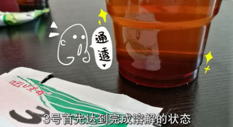 取相同分量的温水倒入5杯夏桑菊中,静置10秒后,3号白云山星群夏桑菊最先达到完全溶解状态,且溶液呈现出清澈透亮的浅褐色。而其他号数的夏桑菊溶液颜色要么深得可怕,要么说深不深说浅不浅的。