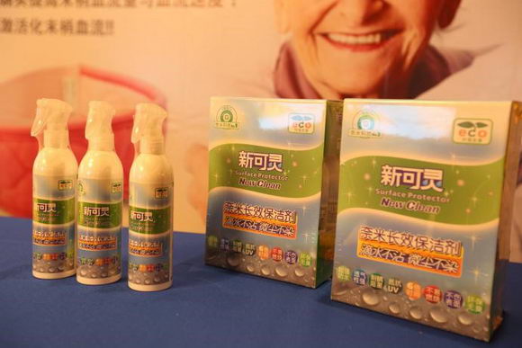 丽台与加拿大合作研发新可灵环保原料,将防水分子奈米化并溶于水中,形成长效防水抗污及抑菌保护层大幅增加防水效果。并保留透气度,使用后在物品表面形成奈米结构,使细菌难以附着、生长与繁殖,形成物理性抗菌保护层。此外新可灵防水兼具抗污、抗UV、阻菌及不易发霉,通过SGS多项检验,是市面上难得一见的不含氟化物的防水抗菌材料,使用后无味无臭不伤表面,不易变色或不染色,能舒服透气。不管是鞋子衣物、背包、抱枕、宠物垫、桌巾、布沙发等,都能轻轻喷洒形成最佳防护,效果持久且安全。