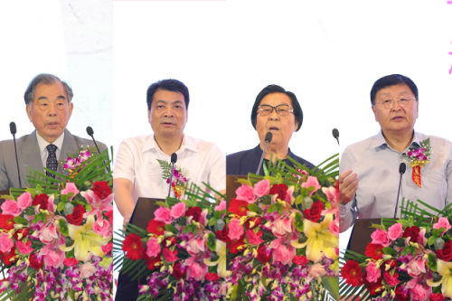 国管理科学研究院常务副院长卢继传、中国食品安全报社副社长李树标、中国管理科学研究院品牌推进委员会主任解艾兰、国家公众营养改善项目办公室主任于小冬在论坛上讲话(从左到右依次)