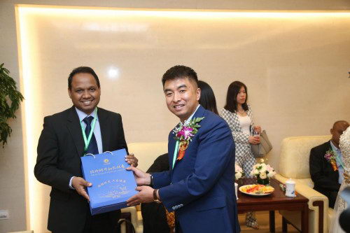 随后,北大荒乐福董事长陈光先生与边振甲会长、卢继传院长、于小冬主任、解艾兰主任、李树标社长及海陆丝绸之路沿线国家大使馆代表共同上台,参加北大荒乐福与海陆丝绸之路相关国家食品行业战略合作启动仪式。确定在日后就绿色有机食品及健康食品进行长期、多元的合作,开启了北大荒乐福与海陆丝绸之路沿线国家间国际合作的新篇章。