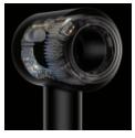 戴森数码马达独特的安置于手柄之中,以高达每分钟11万转的转速,每秒钟将 13 升空气推入放大器中。结合智能温控技术,戴森Supersonic™ 吹风机提供了快速干发所需要的高速强劲的气流,从而减少了对热量的依赖。这意味着水分子能更平缓地从皮质层溢出至头发表面,减少对于皮质层的损伤,有助于呵护秀发呈现健康状态。