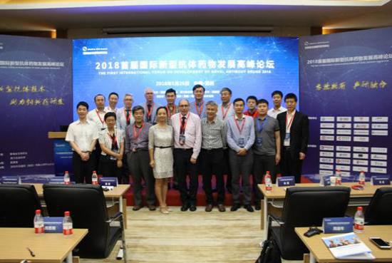 (2018首届国际新型抗体药物发展高峰论坛主办方与与会嘉宾合影)