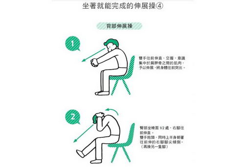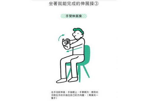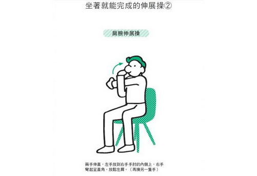 首先介绍可以调整自律神经功能的运动,而且可以直接在办公椅上完成的简易伸展操。共有4项,伸展部位是肩膀、颈部、背部及手臂。每项伸展操都不难,重点在于做法。伸展操基本原则就是在不会有肌肉疼痛的情况下,稍微伸展肌肉,每个动作维持20秒至30秒即可。