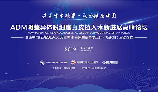 由温州建国医院和中国医促会联合举办的“ADM阴茎异体脱细胞真皮植入术新进展高峰论坛”暨男性·泌尿生殖关爱工程(浙南站)启动仪式将于2019年9月7日召开。