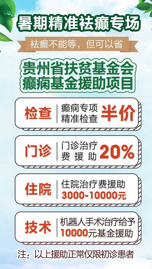 为了减轻癫痫患者就医压力,使广大患者看病有保障,看的起病,又看的好病,7月27日-8月2日,贵州省扶贫基金会癫痫基金暑期公益援助计划·第二期启动,助力患者高效袪癫。