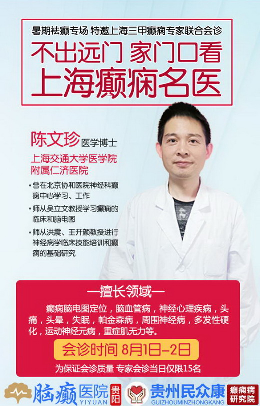 随着气温的不断攀升,夏季癫痫疾病进入爆发期,为了帮助我省癫痫患者早日实现康复,8月1日-2日特邀上海仁济医院陈文珍博士来黔亲诊,多位权威专家强强联手,采用中西结合、辨证施治、多学科诊断的方式为患者做出专业诊断、病情分析及精细治疗方案。