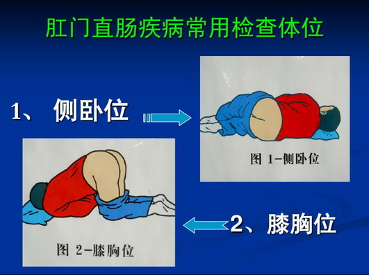 患者可以双手抱膝,仰卧在诊床上,或者将两腿像妇科检查那样子搭在腿台上,可以有效放松括约肌,方便医生更深入的进行检查肛门 。