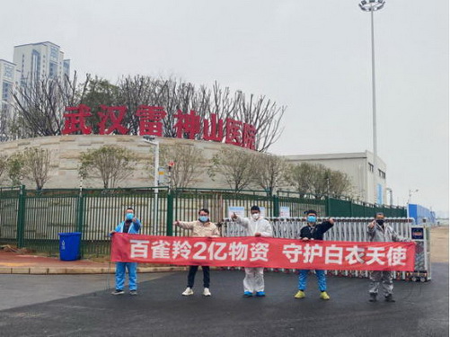 (2月21日,百雀羚第三批捐赠物资送达武汉雷神山医院)