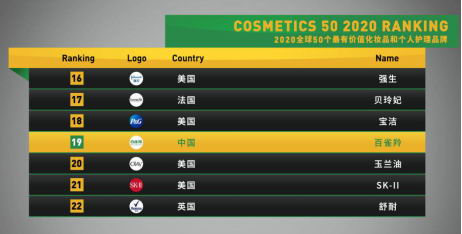 在美、科技与公益等多领域的默默耕耘和积累,不仅让百雀羚品牌在中国深入人心,同时,也让百雀羚成为首位跻身”2020全球最有价值化妆品和个人护理品牌”Top20的中国品牌,再次打造民族品牌在国际舞台的高光时刻。