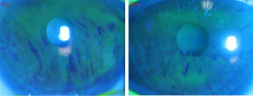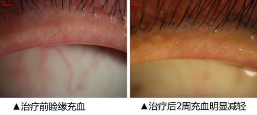 治疗后2周,杨女士复查时,泪膜在眼表停留的时间明显延长了,并且睑缘的充血状态也有改善。