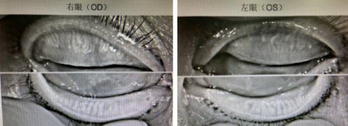 多方打听后来到宜昌华厦眼科医院干眼中心进行治疗。经过详细的干眼评估,杨女士的双眼泪膜破裂时间仅有1秒,泪液分泌试验:右眼0mm/5min,左眼7mm/5min,双眼睑板腺大量萎缩,且角膜已经出现表皮损伤表现,属于重度干眼。