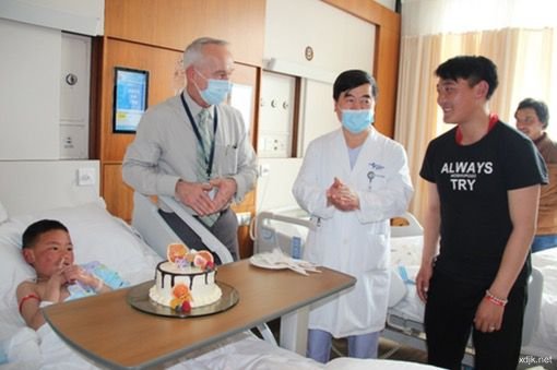 1月20日这天,其美多吉的病房异常热闹,刚做完手术的他在德达医院迎来了8岁生日。