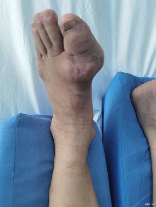 刘先生,痛风史12年,痛风石出现有2年左右,双侧的膝关节以及踝关节,包括脚趾关节都有明显的突起。每次发作时,都痛苦不堪。