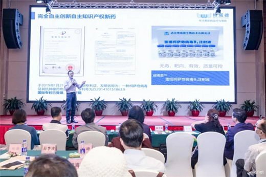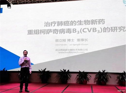 武汉博威德生物科技有限公司董事长兼总经理、首席科学家蔡立刚博士在大会上做了治疗肺癌的生物新药——重组柯萨奇病毒B3(CVB3)研究成果的介绍。