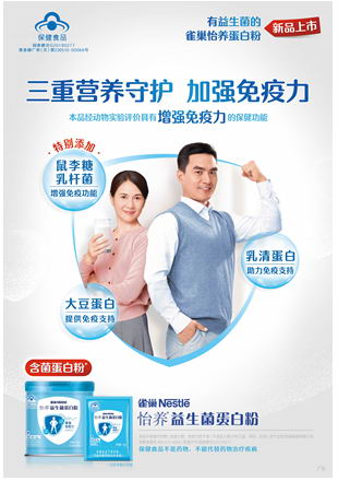 除增强行动力之外,后疫情时代,公众对于增强免疫力的诉求也愈发强烈,雀巢怡养另一款保健食品新品——益生菌蛋白粉,可高质量地满足此需求。新品配方特别添加瑞士进口鼠李糖乳杆菌,与进口的乳清蛋白、精选优质大豆蛋白共同形成三重营养守护,有效增强中老年群体免疫力。
