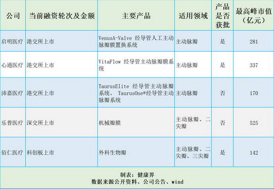 在国内布局TAVR领域的上市公司包括启明医疗、微创心通、沛嘉医疗、乐普医疗、佰仁医疗五家企业。