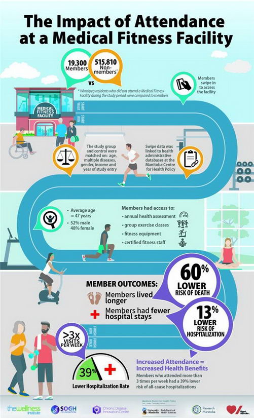 此项研究是一项为期10年的回顾性研究,由七橡树综合医院慢性病创新中心 (CDIC)和曼尼托巴大学健康科学学院的曼尼托巴卫生政策中心(MCHP)的研究人员共同实施。利用曼尼托巴卫生政策中心的数据库,将2005年至2015年,19300位加拿大健康管理中心会员的健康状况和死亡率与温尼伯市近51.6万人的对照组进行调查研究。
