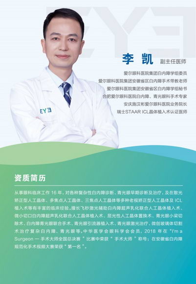 因此,对于有白内障的患者,李凯主任建议尽早到正规医院,检查确诊后,选择合适的手术方式治疗,广大患者如果有关于白内障眼病相关问题也可以拨打0551-65580688咨询和预约。