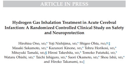 日本西岛医院(Nishijima Hospital)神经外科、日本医科大学医学研究生院、东京顺天堂大学医学院的研究人员,在《Journal of Stroke and Cerebrovascular Diseases》(中风和脑血管疾病研究)上,发表了氢气治疗脑梗(安全性和神经保护)的临床试验报告。
