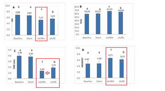 如上图所示,听觉方面涉及的三项能力,时间分辨率、抗噪音能力、听觉记忆都得到了明显改善。