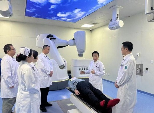八旬患者颅内24个转移瘤的极端病例,考验着医疗技术的极限。放疗科杨岩主任带领团队,利用射波刀设备制定分次照射方案。“在毫米级空间内完成精准治疗,既要清除病灶,又要保护功能区——这是技术与责任的双重考验。”