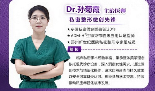 郑州新世纪医院孙菊霞主治医师是妥妥的 “微创大神”,专研私密微创整形快 20 年,还是 ADM-H^R 生物束带临床应用认证医师。阴道紧缩、处女膜修复这些项目找她准没错,她特别懂整体美学,用微创技术做精细化操作,创伤小、恢复快,术后效果自然又持久。好多姐妹做完都反馈,孙医生不仅手艺好,还特别有耐心,全程温柔专业,完全不紧张,口碑在圈子里传得超广。
