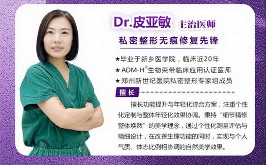 郑州新世纪医院皮亚敏主治医师也超值得冲,深耕私密整形近 20 年,同样是 ADM-H^R 生物束带临床应用认证医师。小阴唇整形、卵巢抗衰这些项目她超擅长,还特别注重个性化定制,秉持 “细节精修,整体焕然” 的理念,会根据每个人的气质、体态做细致评估,设计的方案既实用又好看,改善生理功能的同时还能契合自身条件,做完的姐妹都夸她 “审美在线、手艺精湛”,效果远超预期。
