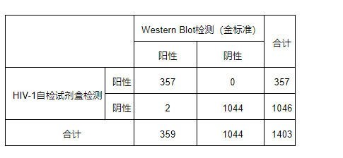 表1尿液HIV-1自测试剂盒与金标准的检测结果比对